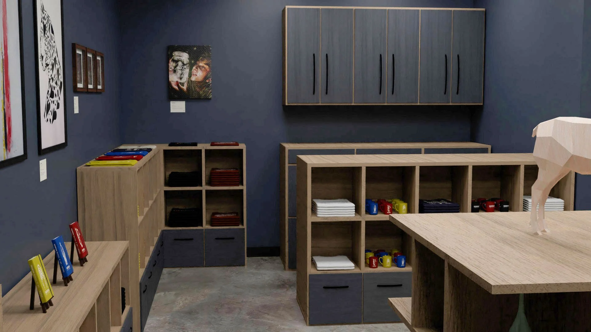 These are just a few examples of what the physical products could look like. I surveyed students about which products they would like to see in the store, so these are based on student demand. In the future, my hope would be that most of the t-shirt design are developed by Herron students.
